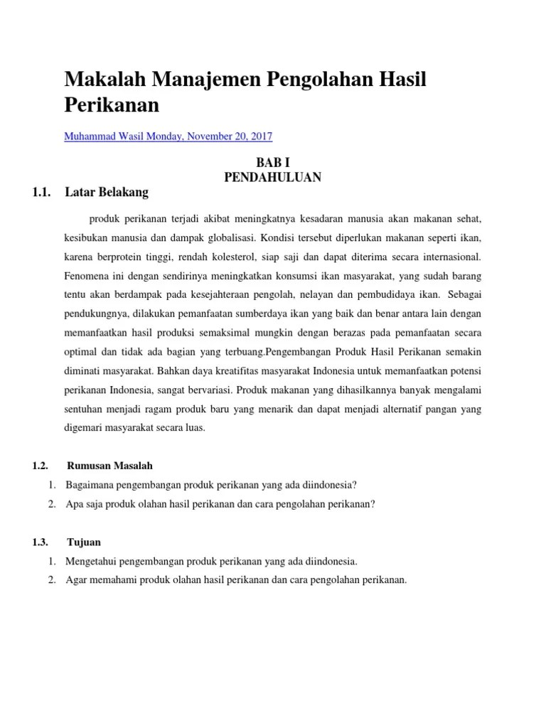 Wilayah pesisir pantai utara seperti kabupaten semarang, kabupaten pati, serta kabupaten rembang merupakan sentra perusahaan pengolahan produk perikanan di jawa tengah. (2) menentukan besarnya biaya pengolahan ikan; Namun demikian, pengetahuan masyarakat tentang hal tersebut masih rendah, terlihat dari data konsumsi ikan masih rendah pula. produk perikanan, serta mendukung pembangunan ekonomi wilayah. Cara penanganan yang baik pengolahan produk hasil perikanan berupa udang rully zulfikar program studi teknologi pangan, fakultas peternakan dan pertanian, universitas diponegoro, semarang korespondensi dengan penulis (ariel.rully@yahoo.co.id) artikel ini dikirim pada tanggal 3 maret 2016 dan dinyatakan diterima tanggal 30 maret 2016.
